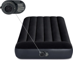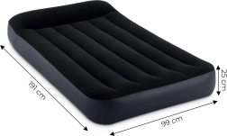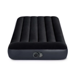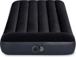 Genießen Sie überall erholsamen Schlaf. Dieses aufblasbare Einzelbett von INTEX verbindet robustes PVC mit einer angenehmen, wasserabweisenden Veloursoberfläche, die das Verrutschen des Bettlakens verhindert und den Komfort erhöht. Die integrierte Pumpe spart Zeit – die Matratze ist im Handumdrehen aufgepumpt und genauso leicht wieder abgelassen.