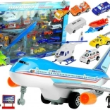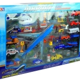 Dieses detailreich gestaltete Flughafen-Playset bietet Kindern stundenlangen Spielspaß. Es enthält alles, was für den Aufbau eines eigenen Flughafens benötigt wird: von der Runway-Matte über das große Passagierflugzeug und den Hubschrauber bis hin zu Bussen, Polizei- und Rettungsfahrzeugen, Feuerwehr mit ausziehbarer Leiter und Arbeitsfahrzeugen. Zubehör wie Palmen, Schilder, Schranken und Lampen verstärkt die realistische Atmosphäre.