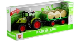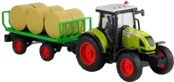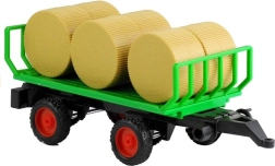 Abnehmbarer Anhänger transportiert 6 Heuballen, die nach Belieben be- und entladen werden können. Der Reibungsantrieb bewegt den Traktor nach dem Anschieben vorwärts, während Gummireifen mit Profil eine stabile Fahrt auf verschiedenen Untergründen gewährleisten. Das Spielzeug besteht aus hochwertigem, robustem Kunststoff ohne scharfe Kanten und erfüllt CE sowie die Norm EN 71.