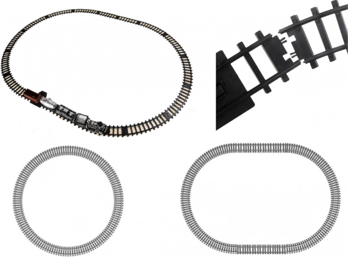 Das Set ermöglicht die Erstellung verschiedener Gleisformen mit den mitgelieferten Teilen. Kombinieren Sie die Einzelteile und bauen Sie die Strecke nach Ihrer Fantasie.