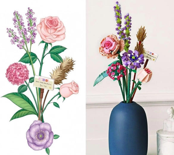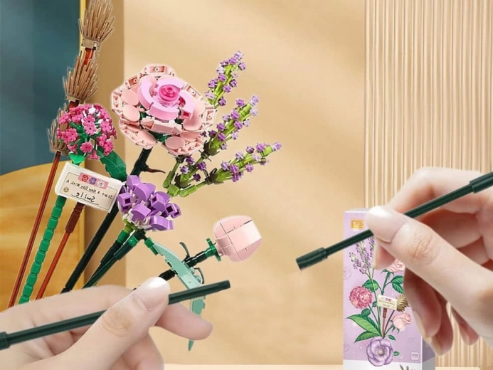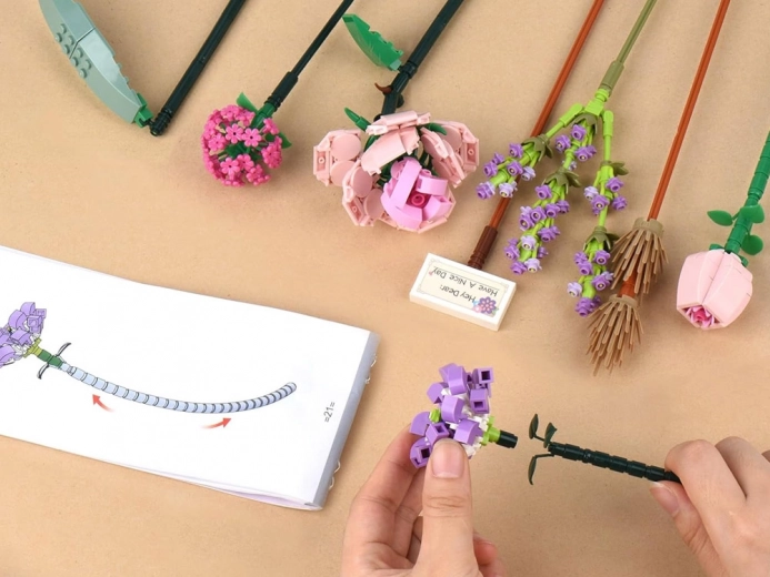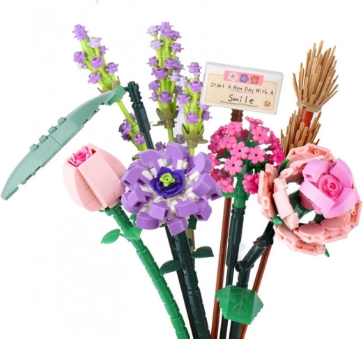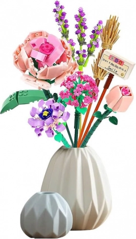 Die Bausteine bestehen ausschließlich aus Kunststoff, sind farbenfroh und hochwertig verarbeitet. Das Set bietet Kindern eine großartige Freizeitbeschäftigung und viel Zufriedenheit. Der arrangierte Strauß in der Vase kann als Zimmerdekoration oder Geschenk für Nahestehende dienen.