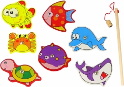 Dieses Set von Holzspielzeugtieren ermutigt Kinder, die Unterwasserwelt zu erforschen. Der Hauptbestandteil ist ein Holzbrett mit schönen Illustrationen des Meeresbodens.