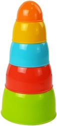 Diese farbige Schalen-Pyramide ermöglicht es Kindern, Türme zu bauen, Schalen ineinanderzustecken und nach Größe oder Farbe zu sortieren. Das Spiel fördert auf natürliche Weise die Fingerfertigkeit, den Griff sowie die Hand-Auge-Koordination und vermittelt zugleich das Verständnis für Größenverhältnisse.