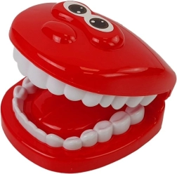 Zähne mit Kiefer, ein Spiegel mit Licht und weiteres Zubehör ermöglichen Kindern, eine zahnärztliche Behandlung sicher kennenzulernen und Ängste vor der Praxis abzubauen.