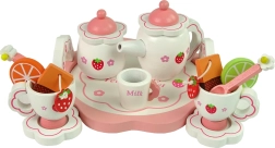 Im Set ist alles für den perfekten „Nachmittagstee“ enthalten: Kännchen, Tassen mit Löffeln, Milchkännchen sowie niedliche Accessoires wie Obstscheiben und Teebeutel. Kinder trainieren Zusammenarbeit, Kommunikation und Motorik bei alltäglichen Spielen.