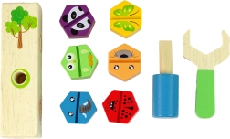 Dieses niedliche Holz-Werkset ist der ideale erste Schritt in die Welt des Reparierens und Bauens. Kinder lernen spielerisch grundlegende Handgriffe, trainieren die Finger und entdecken die Welt der Formen und Farben. Im Set enthalten sind ein Holzblock, bunte Tier-Schrauben, ein Schlüssel und ein Schraubendreher – alles übersichtlich in einer Box verstaut.