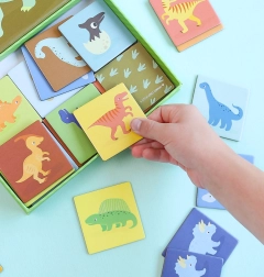 Stärken Sie Ihr Gedächtnis und spielen Sie mit Ihren Kindern mit diesem unterhaltsamen Dinosaurier-Pexeso-Set. Geeignetes Spiel für 2 oder mehr Spieler, bei dem es darum geht, so viele Paare wie möglich zu finden: