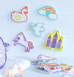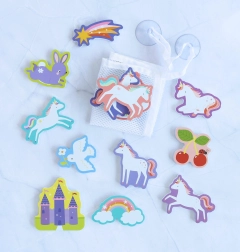 Dieses niedliche Set aus Schaumstoff-Einhörnern macht das Baden zu einem lustigen und kreativen Abenteuer. Die Teile haften nach dem Anfeuchten auf glatten Oberflächen, sodass Kinder ihre eigenen Geschichten direkt auf den Fliesen zusammensetzen können. Dank des verschließbaren Netzes mit Saugnäpfen bleibt alles ordentlich und die Spielzeuge trocknen schnell.