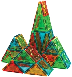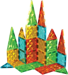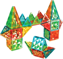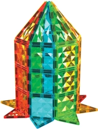 Entdecken Sie die Freude am kreativen Bauen mit transparenten Quadraten und Dreiecken mit glänzender Facettenstruktur. Magnetische Kanten haften intuitiv aneinander, sodass auch kleine Hände mühelos stabile Türme, Raketen und weitere Fantasieobjekte bauen - ganz ohne kompliziertes Einklicken.