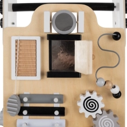 Fördert die kindliche Fantasie: Pädagogisches Board mit verschiedenen Aktivitäten wie Becken, Abacus, Labyrinth und mehr.