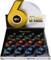 Dieses Rennmotorrad ist für Kinder ab 3 Jahren konzipiert und bietet realistische Details in drei verschiedenen Farben. Es misst 12 x 7 x 6 cm und ist aus einer Kombination von Metall und Kunststoff gefertigt.