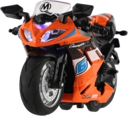 Beeindrucken Sie mit Soundeffekten und leuchtenden Lichtern, die die Authentizität dieses Spielzeugs erhöhen. Dank der Rückziehfunktion können Sie beobachten, wie das Motorrad voller Energie vorwärts rast.