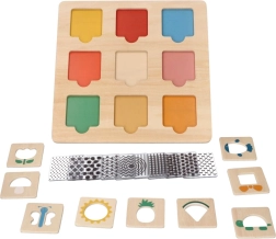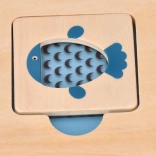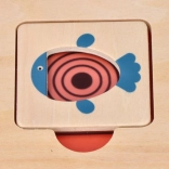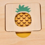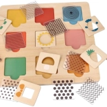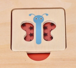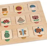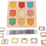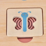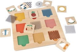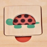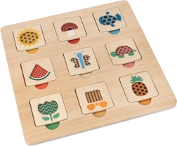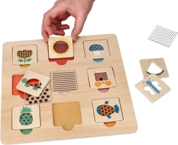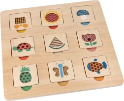 Dieses hölzerne Lernpuzzle weckt die Freude am Entdecken. Farbige Motive (Tiere, Blumen und weitere Muster) laden zum Einsetzen und Verschieben der Teile ein, was auf natürliche Weise die Hand-Auge-Koordination und die Geduld fördert. Dank der robusten Holzplatte und der leicht greifbaren Teile ist das Spiel intuitiv und sicher.