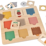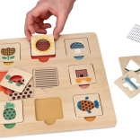 Die Teile lassen sich leicht verschieben und in die markierten Felder einsetzen, was Kinder zu wiederholtem Ausprobieren motiviert und die Koordination und Geduld verbessert.