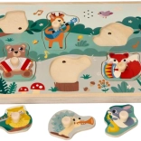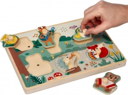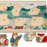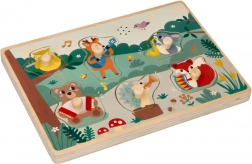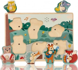 Dieses hölzerne Sound-Steckpuzzle mit Waldmotiv ermöglicht Kindern erste Begegnungen mit Musikinstrumenten auf spielerische Weise. Jedes farbige Teil mit Tiermotiv hat einen praktischen Greifknopf für leichtes Halten, und beim Einsetzen an die richtige Stelle ertönt der passende Sound, der zum wiederholten Spielen und Entdecken motiviert.