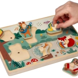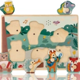 Große Teile mit praktischen Griffknöpfen liegen gut in der Hand und passen genau in die Formen. Kinder trainieren Greifen, Genauigkeit und Geduld beim Puzzeln.