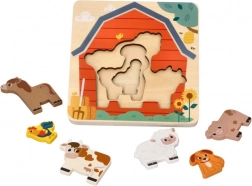 Entdecken Sie den Zauber des Bauernhofs mit dem Lagenpuzzle aus Holz – ideal für kleine Entdecker ab 18 Monaten. Kinder setzen die einzelnen Tiere in die passenden Formen, trainieren logisches Denken und üben die Auge–Hand-Koordination. Dank klarer Konturen und kräftiger Farben lässt sich das Puzzle leicht handhaben und das Lernen wird ganz natürlich spielerisch.