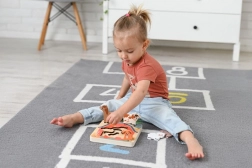 Das Einsetzen der Teile in die passenden Aussparungen stärkt die Finger, die Auge–Hand-Koordination und die Geduld. Ideal für kleine Hände ab 18 Monaten.