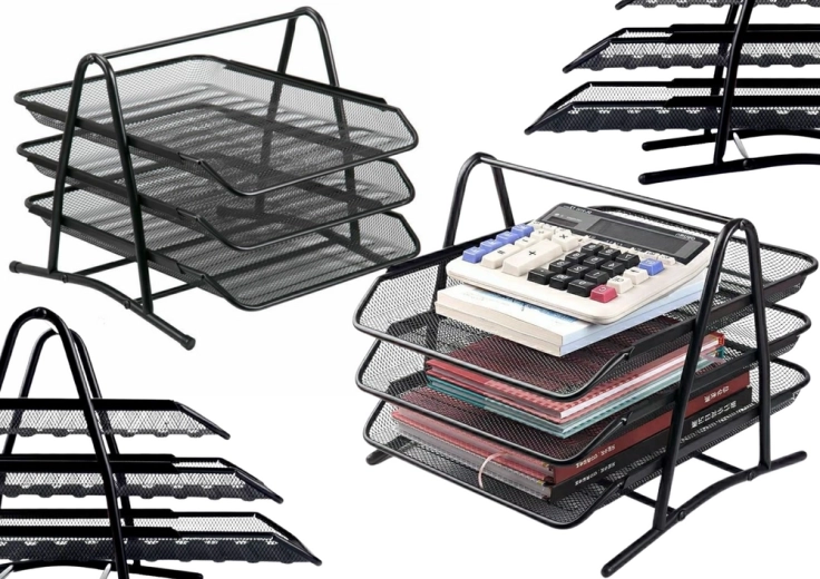 Der Dokumenten-Organizer ist die ideale Lösung zur Organisation des Bürobereichs. Hergestellt aus Metallgitter mit elegantem schwarzem Lack verbindet er Robustheit mit modernem Design für jedes Interieur. Seine universelle Farbe verleiht Büro, Klassenzimmer oder Wohnraum Eleganz und Stil. Dank des schlichten, aber funktionalen Looks passt er zu verschiedenen Einrichtungsstilen, von modern bis klassisch.