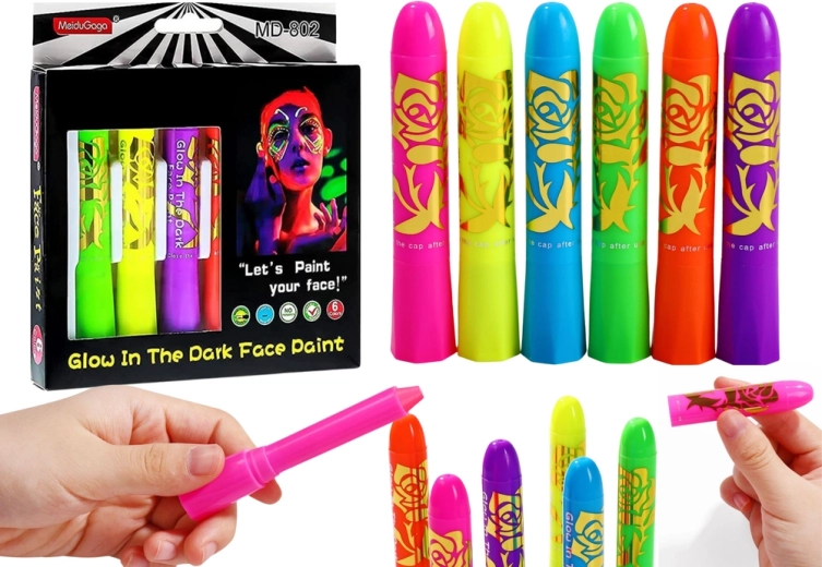 Neon-Set zum Schminken des Gesichts ist eine großartige Möglichkeit, Kreativität zu fördern und sich durch Kunst auszudrücken. Es enthält 6 Stifte in intensiven fluoreszierenden Farben, ideal zum Gestalten origineller Muster im Gesicht, am Körper oder an den Händen.