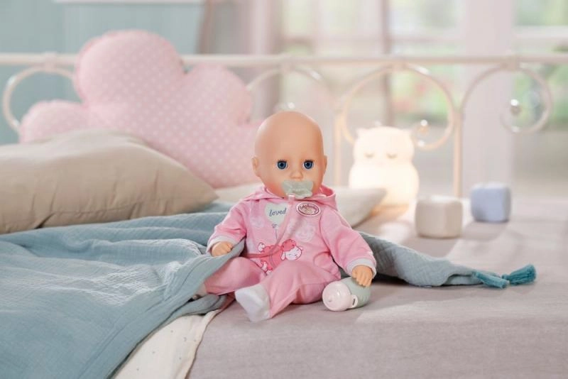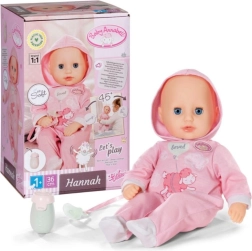 Hannah bringt in ihr neues Zuhause ein Fläschchen, einen Schnuller und einen niedlichen Strampler mit Kapuze mit. Also alles, was Kinder zum Spielen mit der Puppe brauchen.
