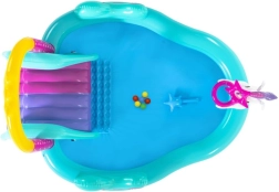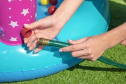 Zum Lieferumfang gehören auch lustige Extras – 6 Bälle, ein Wurfring in Sternform und ein Zauberstab, mit denen Kinder eigene Spielideen umsetzen können. Das praktische Ablassventil erleichtert Pflege und Verstauen nach dem Baden.