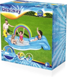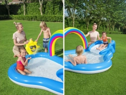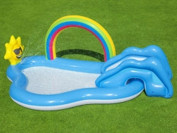 Dieser Wasserspielplatz ist die perfekte Wahl für Kinder in Ihrem Sommer. Dank der freundlichen Kombination mit Regenbogentor und Sonne werden Ihre Kinder stundenlangen Spaß im erfrischenden Wasser haben. Die Multifunktionalität des Pools bietet nicht nur einen kühlen Unterschlupf vor der Sommerhitze, sondern bringt auch Lachen und Freude durch die vielfältigen Funktionen.