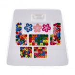 Dieses Perlen-Set fördert die kindliche Kreativität und ermöglicht das Gestalten von verschiedenen dekorativen Objekten.