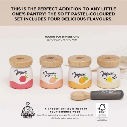 Beginnen Sie den Tag mit dem Holzyoghurt-Set von Le Toy Van! Es enthält vier freundliche Joghurtmodelle mit den Geschmacksrichtungen Pfirsich, Vanille, Himbeere und Erdbeere. Die Holzteile fördern die Entwicklung der Feinmotorik und ermöglichen es den Kindern, die Bedeutung gesunder Ernährung zu entdecken.