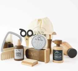 Dieses Set für kleine Friseure und Barbiere von Le Toy Van ist ideal für alle kleinen Stylisten. Die Friseurtasche mit Kordelzug besteht aus naturbelassener Baumwolle und ist mit 11 hochwertigen Zubehörteilen aus glattem, abgerundetem FSC®-zertifiziertem Holz ausgestattet. Jedes Teil ist von Hand mit ungiftigen Farben bemalt und ist splitterfest.