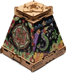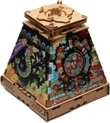 Verwandeln Sie die hölzerne Pyramide in einen auffälligen Design-Blickfang. Diese zweite Schicht mit dem Thema Aztekisches Reich überdeckt die ursprünglichen Motive elegant und verleiht Ihrem Modell einen markanten, farbenfrohen Look, inspiriert vom alten Mesoamerika. Die Erweiterung ist ausschließlich für die PYRAMIDA SLUNCE bestimmt und hat nur dekorativen Zweck – sie beeinflusst weder den Mechanismus noch die Lösung des Rätsels.