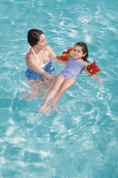 Die aufblasbaren Bestway-Schwimmflügel sind ideal für Kinder, die Schwimmen lernen. Zwei separate Luftkammern sorgen für zuverlässigen Auftrieb, während das weiche und leichte PVC die Armbewegungen nicht einschränkt. Das fröhliche Ananasmotiv und die leuchtenden Farben motivieren kleine Schwimmer zu einem sicheren Kennenlernen des Wassers.