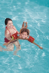 Zwei unabhängige Luftkammern halten das Kind stabil über Wasser und unterstützen die richtige Position beim Schwimmenlernen.