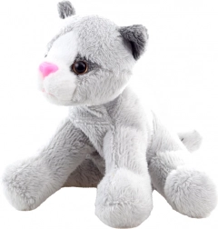 Die Plüschkatze in hübschem Grauton mit einem niedlichen weißen Gesicht und rosa Näschen wird jedem Kind Freude bereiten.