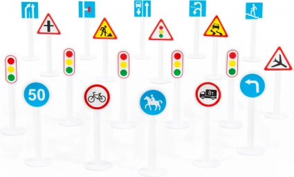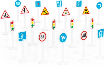 Set von 20 Kunststoff-Verkehrszeichen für das unterhaltsame Erlernen der Verkehrsregeln.