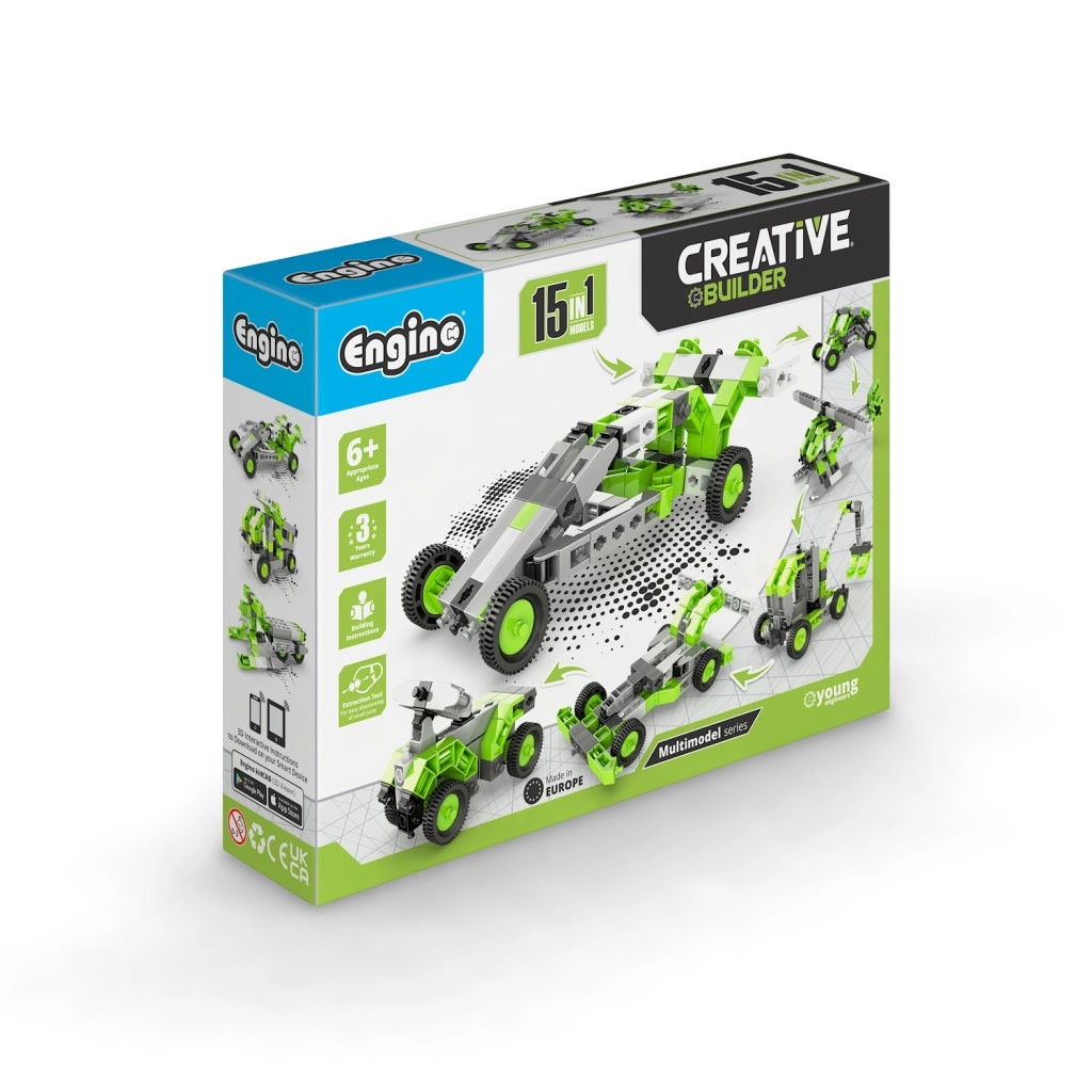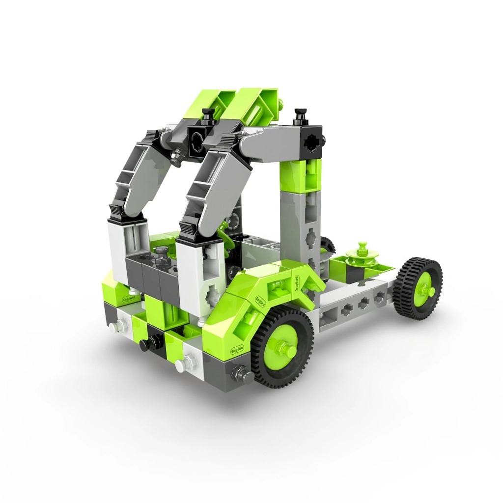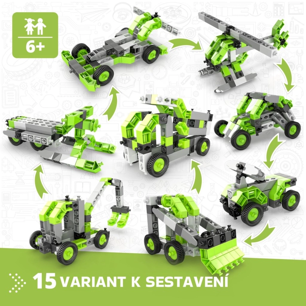 Erstellen Sie eine Sammlung von Fahrzeugen mit Rädern, Hubarmen und weiteren Maschinen, die Vorstellungskraft und MINT-Fähigkeiten fördern. Das Set wird in der EU (Zypern) hergestellt und ist vollständig mit anderen Engino-Bausets kompatibel – die Erweiterungsmöglichkeiten sind praktisch unbegrenzt.