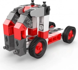 Die aufgebauten Fahrzeuge fahren wirklich. Stabile Kunststoffteile halten häufige Umbauten und intensives Spielen aus.