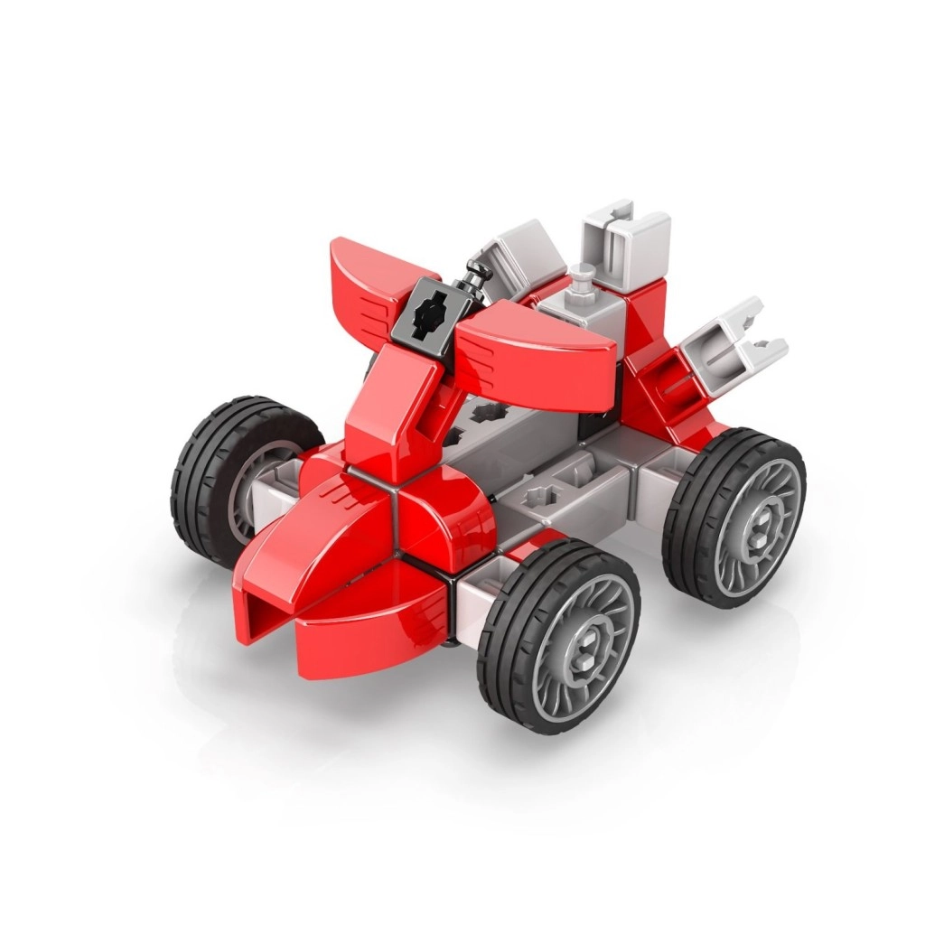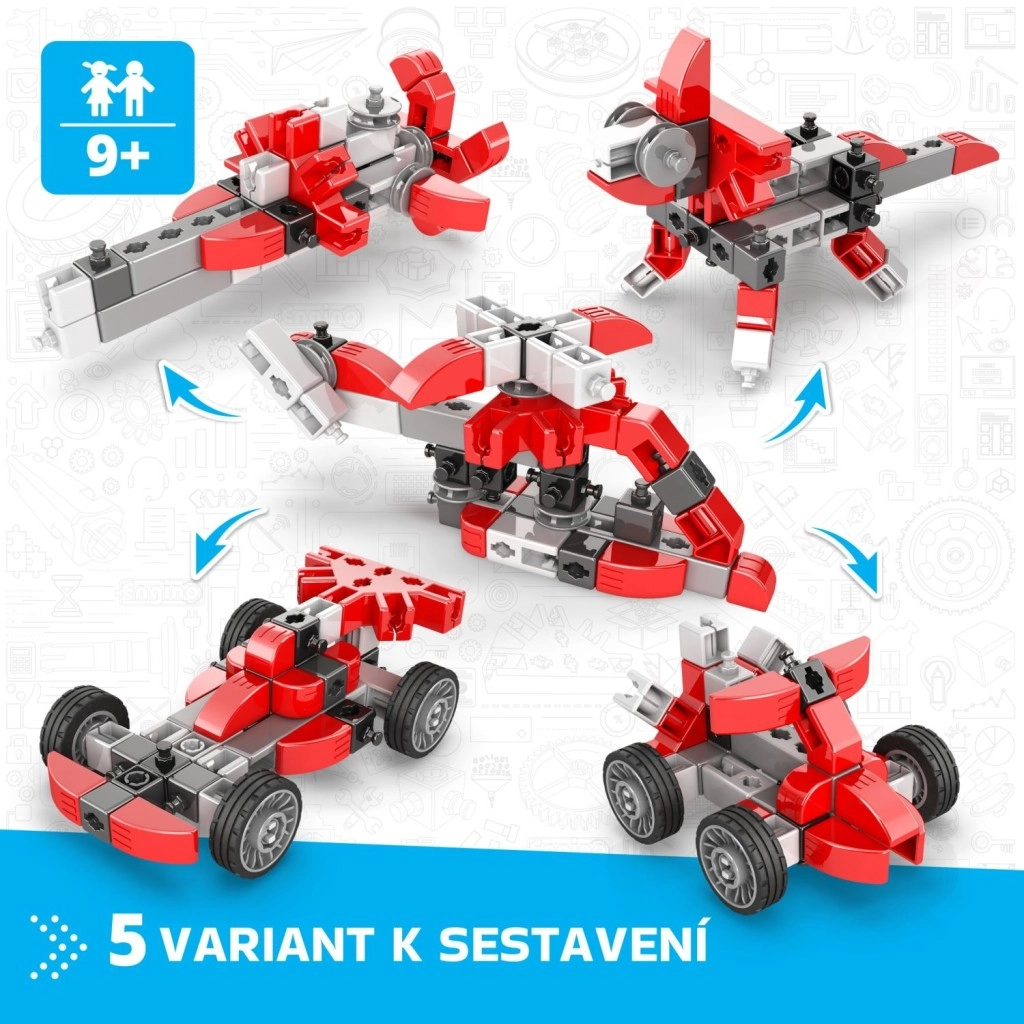 Das Bauset Engino Inventor Formel – 5 Modelle bietet Kindern und Eltern stundenlangen Bauspaß. Das einzigartige System aus Verbindern und Bausteinen ermöglicht eine stabile Verbindung und zugleich einfache Umbauten. Mit der übersichtlichen Anleitung und der Unterstützung der Engino kidCAD App bauen Sie Schritt für Schritt attraktive Modelle und erlernen die Grundlagen des technischen Denkens.
