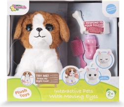 Dieser interaktive Hund ist so konzipiert, dass er Kinder mit seinen realistischen Reaktionen begeistert. Beim Drücken der rechten Pfote oder Berühren anderer Körperteile wie Kopf, Schnauze oder Brust bellt der Hund, niest und macht weitere Geräusche. Drei schnelle Berührungen des Kopfes lassen den Hund die Augen schließen und einschlafen, was den Kindern ermöglicht, ein pflegendes Spiel zu erleben. Das Anlegen einer Flasche oder eines Knochens an das Maul simuliert Fressen.