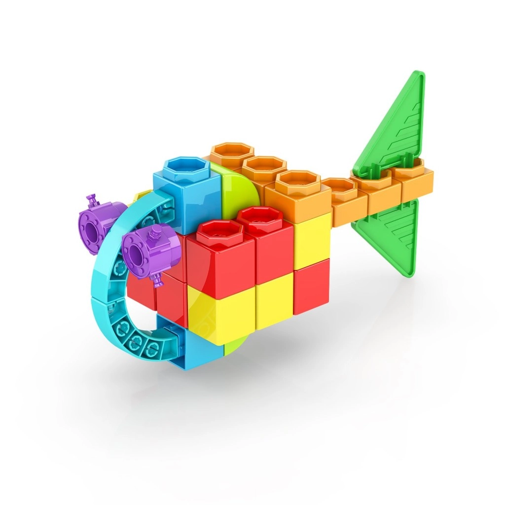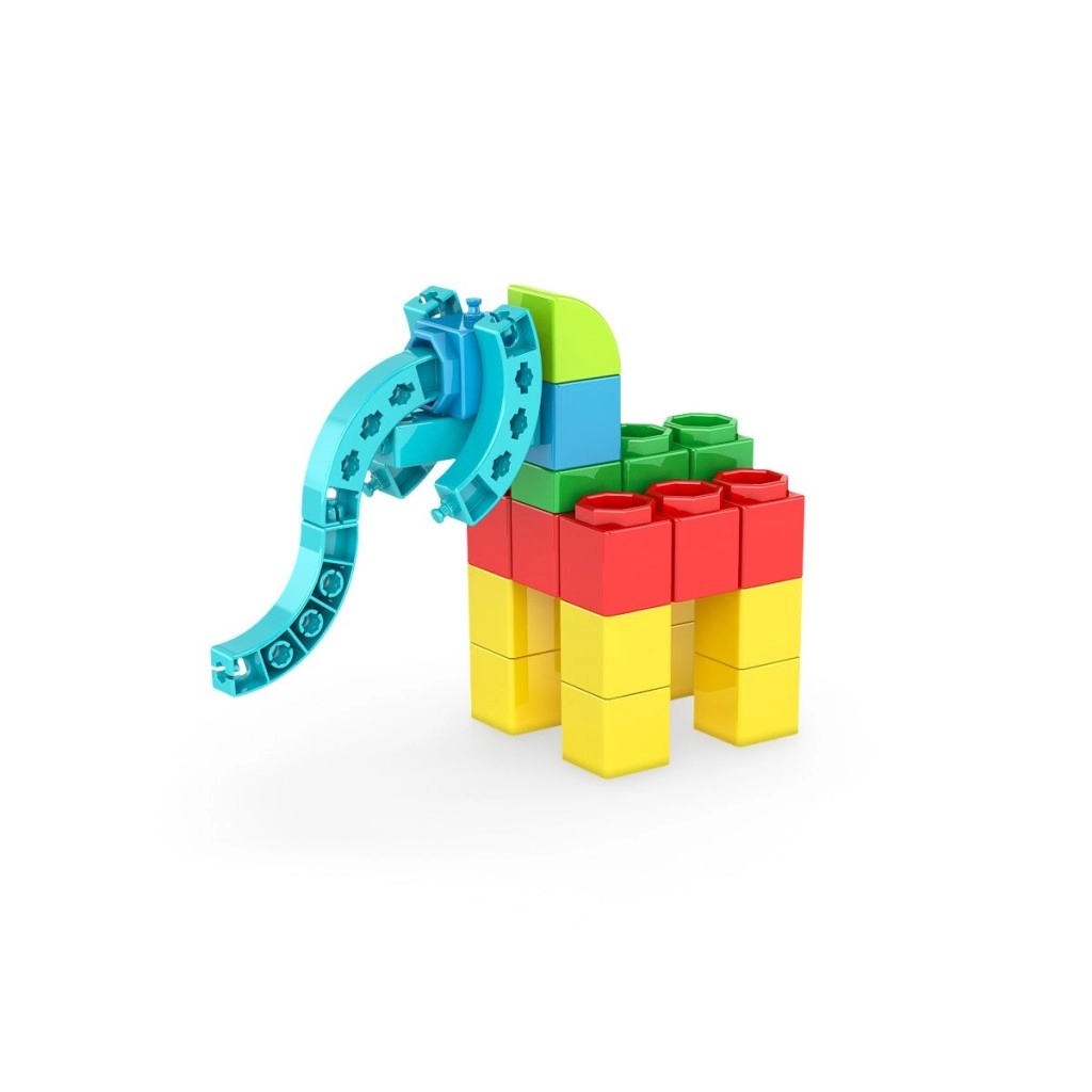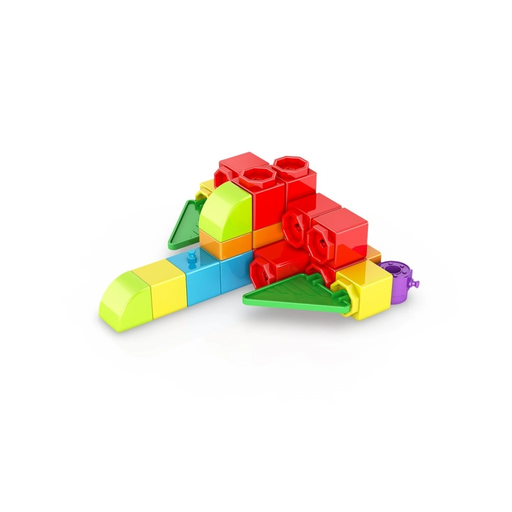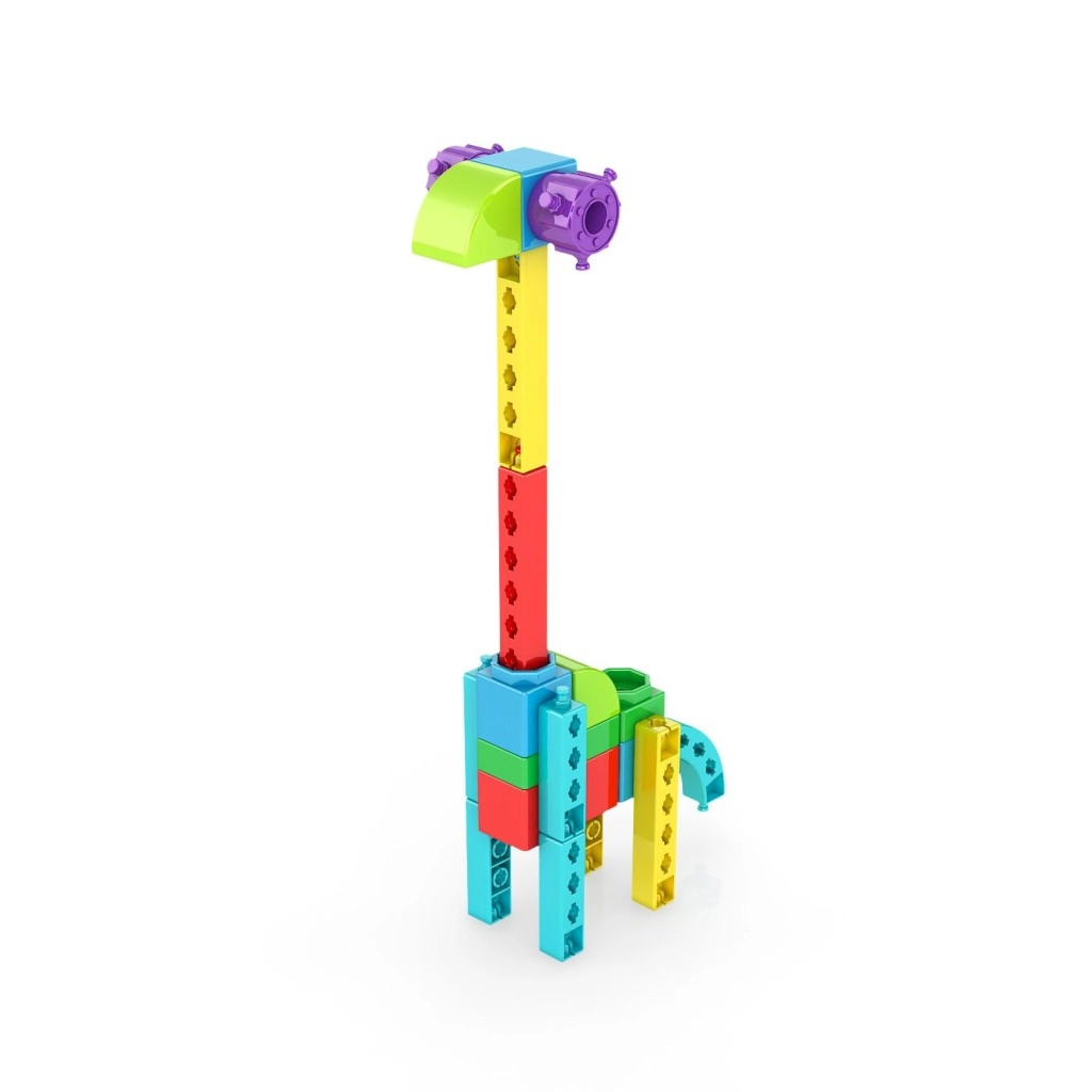 Bauen Sie Tiere, Maschinen und Fahrzeuge aus großen, farbenfrohen und leicht verbindbaren Teilen. Die Vielfalt fördert Vorstellungskraft und Feinmotorik.