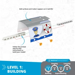 Der ENGINO-Baukasten „Wie Auftrieb funktioniert“ vermittelt Kindern verständlich die Prinzipien des Auftriebs und grundlegende physikalische Gesetzmäßigkeiten. Das Set bietet bis zu vier verschiedene Modelle, die Kinder Schritt für Schritt bauen, gestalten und testen, um besser zu verstehen, wie und warum Objekte schwimmen oder schweben.