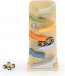Die bunte Rampenbahn mit Auto motiviert zum wiederholten Spielen, stärkt Beobachtung, Koordination und das Verständnis von Ursache und Wirkung.