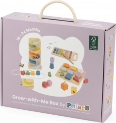 Sicheres Holzdesign mit glatten Kanten und pastellige Farben laden zum Entdecken ein, fördern Geduld, Konzentration und logisches Denken. Das Set ist ein tolles Geschenk und ein Einstieg in sinnvolle, Montessori-inspirierte Aktivitäten.