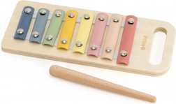 Das pastellfarbene Holzxylofon führt Kinder in die Welt der Töne ein, schult das Hörvermögen und den Rhythmus und unterstützt die Hand-Auge-Koordination beim Schlagen mit dem Schlägel.
