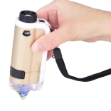 Dieses tragbare Mikroskop verwandelt Alltagsgegenstände in faszinierende Objekte. Dank starker LED-Beleuchtung und präziser Fokussierung siehst du Details von Blättern, Insektenflügeln, Zwiebelzellen oder Display-Pixeln. Seine kompakte Größe ermöglicht es, das Mikroskop überallhin mitzunehmen – auf Spaziergänge, in den Park oder ins Schullabor.