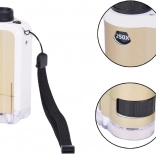 Das Gerät ist einfach zu bedienen: Lege die transparente Basis auf die Oberfläche des Untersuchungsobjekts, stelle mit dem Drehrad scharf und wähle je nach Bedarf 100x oder 250x Vergrößerung. Die robuste Metall- und Kunststoffkonstruktion, die Stromversorgung mit 1× AAA 1,5 V sowie das Zubehör im Lieferumfang machen es zu einem großartigen lehrreichen Geschenk.