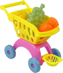 Enthält einen Einkaufskorb mit gelbem Korb und Plastikkfrüchten, ideal für Rollenspiele beim Einkaufen.