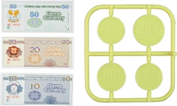 Das Set enthält Papiergeldscheine und Plastikmünzen, die speziell zur Förderung der finanziellen Bildung von Kindern entwickelt wurden.
