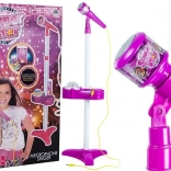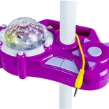 Dieses multifunktionale Kinder-Mikrofon auf Stativ verwandelt das Kinderzimmer in eine kleine Bühne. Das interaktive Panel mit eingebautem Lautsprecher, Tasten zum Wechseln der Backings und zur Lautstärkeregelung wird durch einen magischen Disco-Projektor ergänzt, der farbige, wirbelnde Lichter projiziert. Dank des mitgelieferten Kabels lassen sich Telefon oder MP3-Player anschließen, um zu eigenen Liedern zu singen.