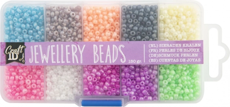 Entdecken Sie ein wunderschönes Perlen-Set mit 10 verschiedenen Farben, perfekt arrangiert in einem praktischen Kunststoff-Organizer.<0/div>